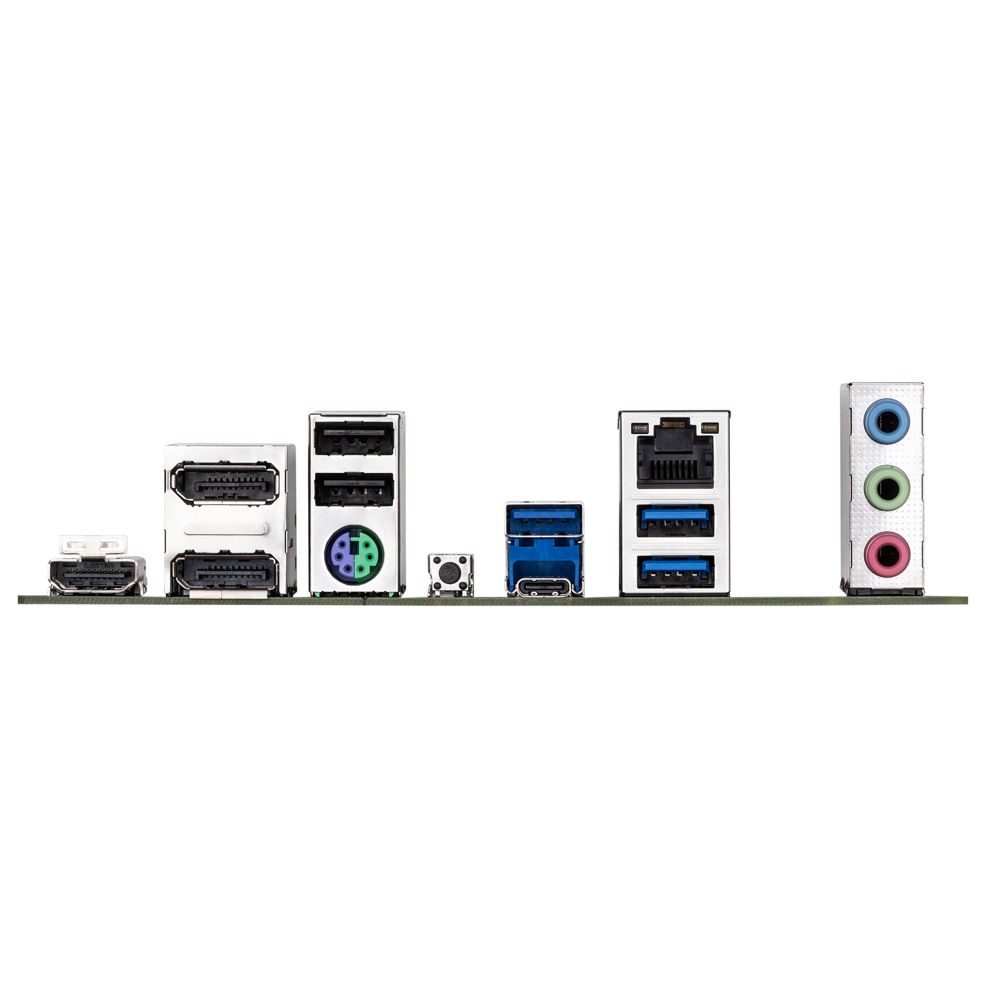 | لوحة الإدخال/الإخراج الخلفية | 1 × HDMI، 2 × DP، 1 × PS/2، زر Q-Flash Plus 1 × USB-C 3.2 الجيل الأول، 3 × USB 3.2 الجيل الأول، 2 × USB 2.0 1 × شبكة محلية، 3 × مقابس صوت |